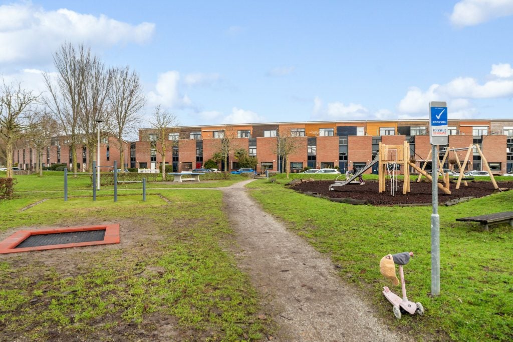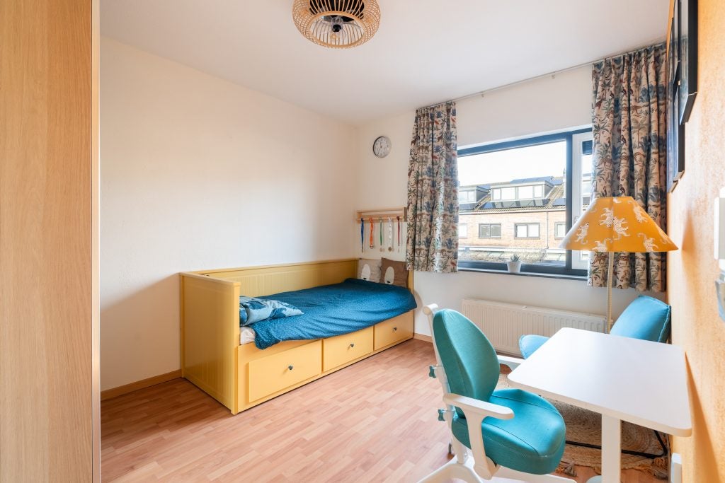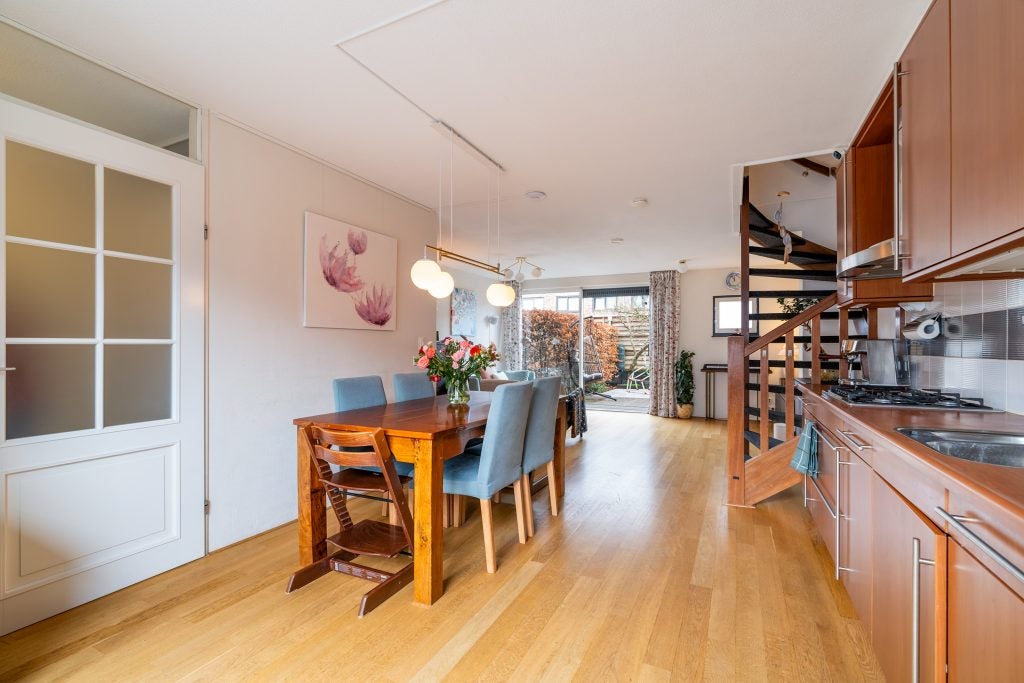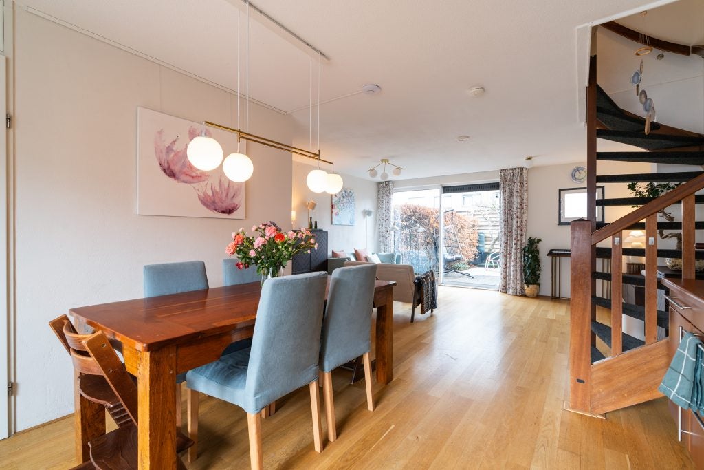 De begane grond heeft een nette voortuin, entree, hal, toilet en een open keuken met inbouwapparatuur. De tuingerichte woonkamer met vloerverwarming leidt naar de sfeervolle achtertuin. Op de eerste verdieping zijn er drie slaapkamers en een moderne badkamer. De tweede verdieping beschikt over een vierde slaapkamer met dakkapel en een betegeld dakterras. Bijzonderheden zijn onder andere de goede isolatie en de kindvriendelijke omgeving.