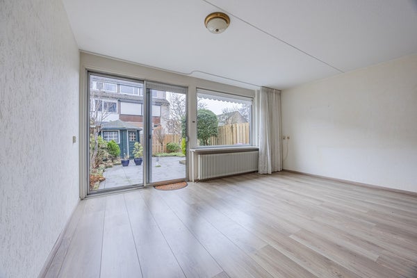 • Lichte woonkamer met schuifpui naar de tuin.
