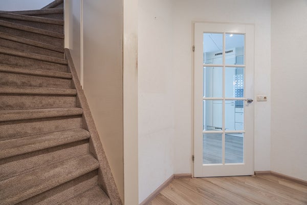 Entree naar hal met toilet, trapopgang en berging aan de voorzijde.
