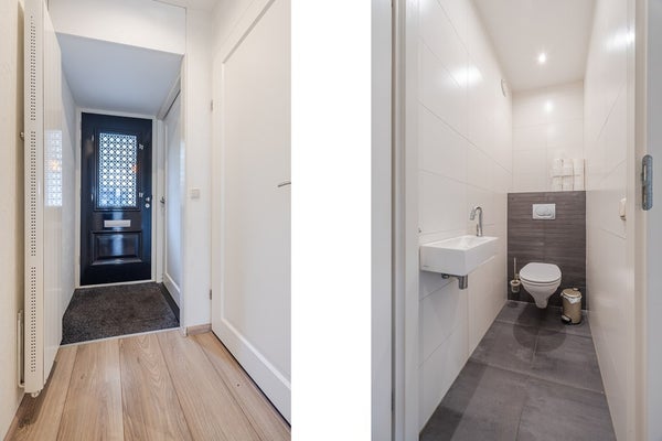 • Het toilet in de hal is voorzien van een zwevend closet en wasbakje.