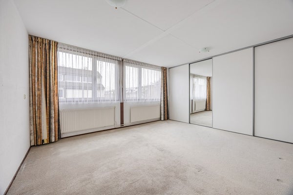 • Eerste etage met 2 ruime slaapkamers van ca. 15 m² en 21 m² met grote raampartijen en inbouwkasten. De slaapkamer aan de achterzijde is tevens voorzien van een elektrisch zonnescherm.