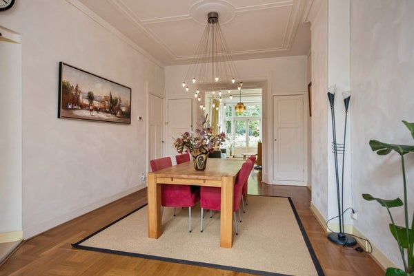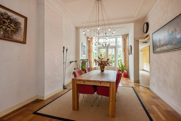 Dichtbij het monumentale Agnetapark ligt dit karakteristieke herenhuis uit 1913 met een woonoppervlakte van 195 m². De woning combineert originele stijlen met hedendaags comfort, zoals hoge plafonds, een kamer-en-suite en een erker met openslaande deuren. De achtertuin op het zuidwesten is verzorgd en heeft een achterom en berging. Op de begane grond vindt u de entree, een ruime hal, een statige woonkamer, een lichte eetkamer en een keuken met inbouwapparatuur. De eerste verdieping heeft drie slaapkamers, waaronder een hoofdslaapkamer met balkon, en een ruime badkamer. De tweede verdieping biedt meer slaapkamers en een tweede badkamer. Met 5 slaapkamers, rust en nabijheid van voorzieningen, is dit huis ideaal voor gezinnen.