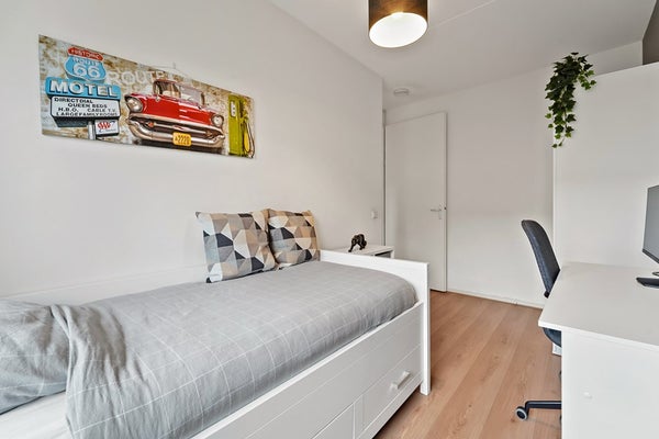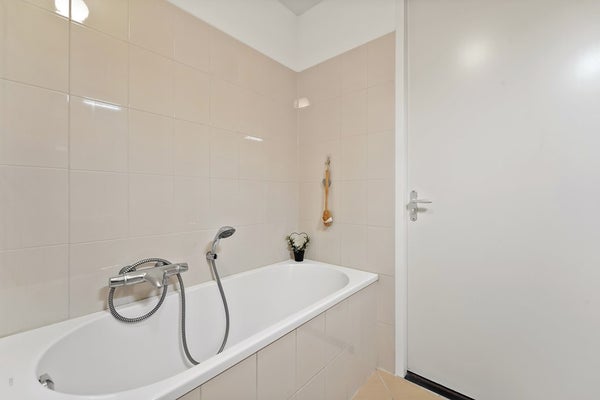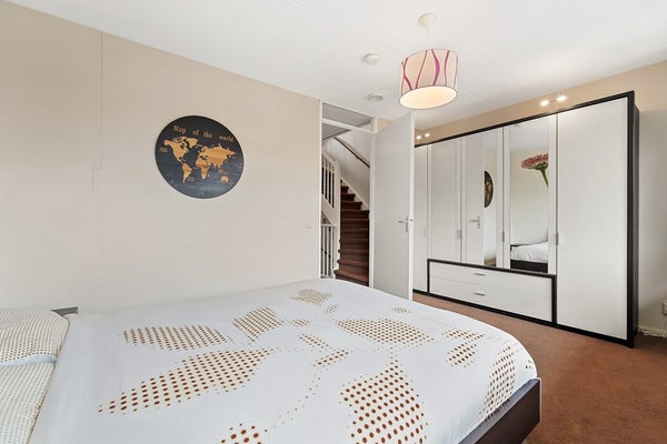 Op de eerste verdieping bevinden zich drie volwaardige slaapkamers en een nette badkamer. De kamers zijn praktisch ingedeeld en bieden volop mogelijkheden voor een gezin, thuiswerken of een hobbyruimte. De hoofdslaapkamer is aan de voorzijde, over de gehele breedte van de woning gelegen. Aan de achterzijde van de woning zijn de andere twee slaapkamers aanwezig. De badkamer is bereikbaar vanaf de overloop. De nette badkamer is voorzien van een ligbad, separate doucheruimte, wastafel en tweede toilet.