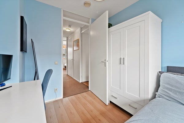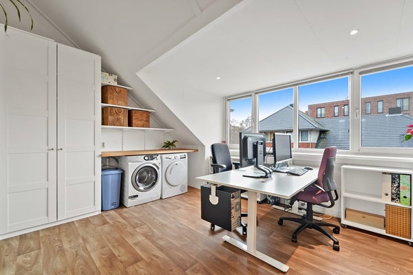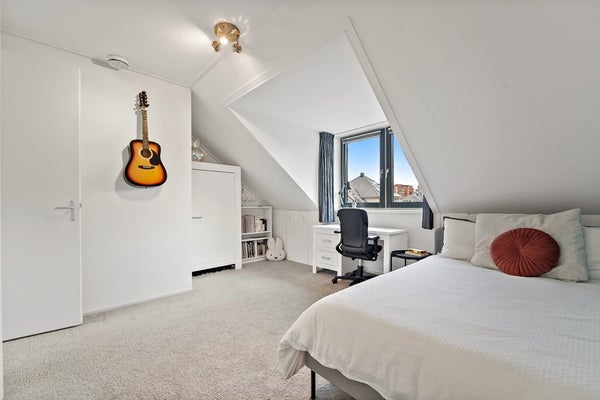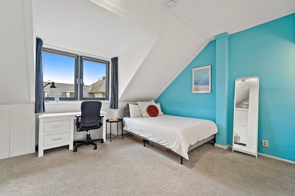 De zolderverdieping is verbouwd en optimaal ingedeeld door de aanwezigheid van twee dakkapellen. De huidige eigenaren gebruiken de overloop als kantoor/werkkamer. In deze ruimte zijn diverse slimme opbergruimtes gecreëerd en zijn er aansluitingen voor wasmachine en droger aanwezig. Ook de CV ketel (2019) en WTW unit bevinden zich hier. Boven de trap en in de nok zijn ook vaste bergruimtes aanwezig. Dankzij de brede dakkapel (2015) is het gebruik van de zolderverdieping geoptimaliseerd. Aan de voorzijde van de verdieping is een zeer riante slaapkamer aanwezig. De slaapkamer beschikt over een ruime vaste kastenwand en een wastafelmeubel. Samen met de dakkapel een hele fijne, verrassende kamer.