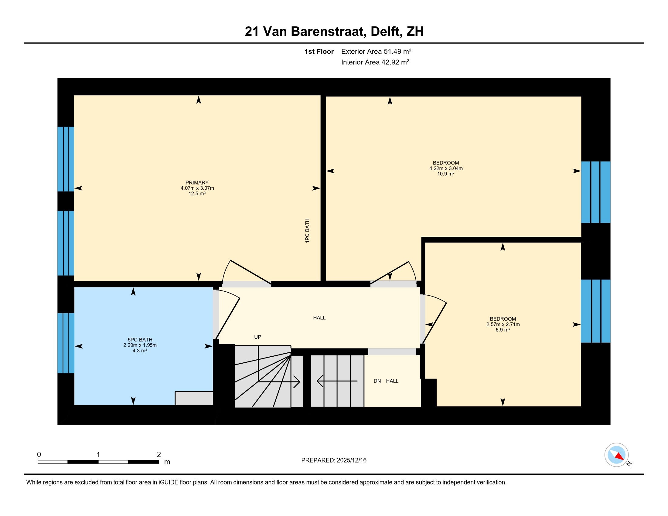 Begane grond: Entree, hal, toilet, lichte woonkamer met toegang tot de zonnige achtertuin met berging. Eerste verdieping: drie slaapkamers en een badkamer. Tweede verdieping: dakterras en twee slaapkamers met tweede badkamer. Woonoppervlakte 123 m².