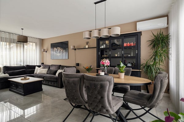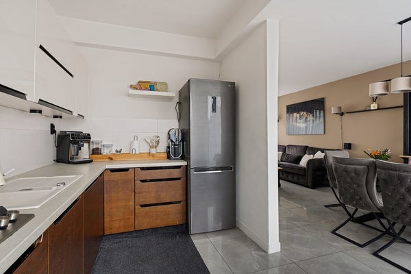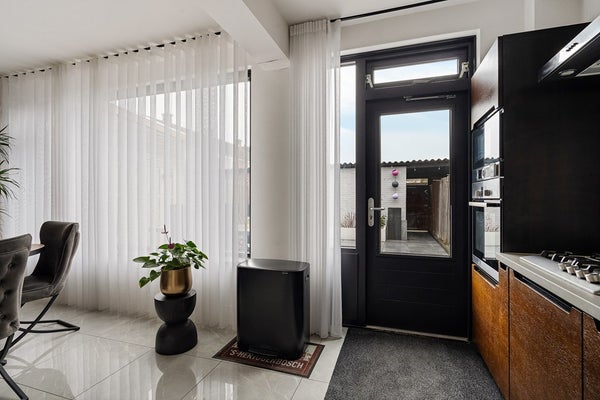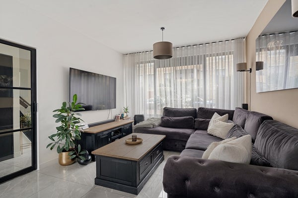 Wanneer je de voortuin doorloopt en binnenkomt, valt direct op hoeveel leefruimte het huis je biedt. De royale woonkamer vormt het hart van de woning: lekker licht dankzij grote raampartijen en met voldoende plek voor zowel een gezellige zithoek als een grote eettafel. Koken doe je in de praktische keuken, die eenvoudig toegang biedt tot de tuin, perfect voor wie van binnen naar buiten loopt met een dienblad vol lekkers.