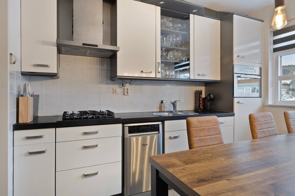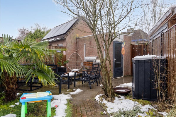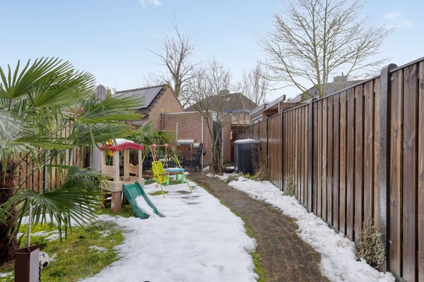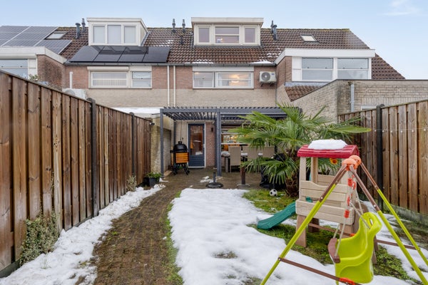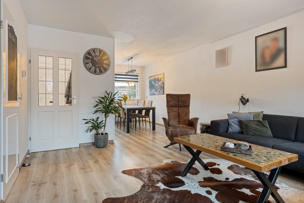 Binnenin kom je via de hal in de sfeervolle woonkamer met grote ramen. De moderne keuken is uitgerust met een gasfornuis en biedt ruimte voor een eettafel. De eerste verdieping heeft drie slaapkamers en een badkamer met ligbad en douche. De tweede verdieping herbergt een grote vierde slaapkamer met dakkapel. De tuin heeft een terras met overkapping, gazon en volwassen begroeiing. Ook is er een berging voor fietsen en tuingereedschap.