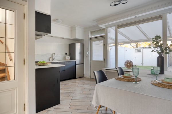 Deze instapklare hoekwoning in de wijk De Hambaken is van boven tot onder volledig gerenoveerd en biedt een comfortabele leefruimte voor het gezin. Op de begane grond vind je een diepe woonkamer van 10,50 meter met een nette tegelvloer en een moderne open keuken, die in 2022 is vernieuwd. De eerste verdieping herbergt een royale ouderslaapkamer en twee ruime (kinder)slaapkamers, met een complete badkamer voorzien van een whirlpool en inloopdouche. De woning heeft een volwaardige zolderkamer, een wasruimte en veel bergruimte. De achtertuin van ruim 9,50 meter diep beschikt over een overkapping en een stenen berging. De woning is energiezuinig met energielabel B en centraal gelegen nabij voorzieningen. Geschikt voor gezinnen en starters!