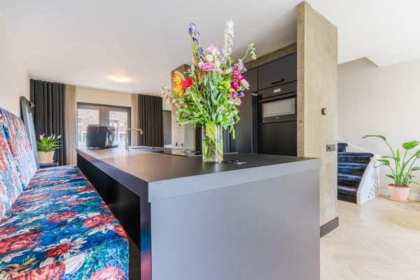 Deze royale herenhuis in Haverleij biedt comfortabele en luxe afwerkingen met vijf slaapkamers en twee badkamers. De woning heeft een moderne uitstraling en beschikt over vloerverwarming op de begane grond. Je komt binnen via een overdekte entree en vindt een ruime leefruimte met grote raampartijen die uitgeven op een zonneterras van 24 m². De open keuken is stijlvol ingericht met een centraal kookeiland en hoogwaardige apparatuur zoals een BORA inductiekookplaat en een Quooker. Op de eerste verdieping bevinden zich drie slaapkamers en een luxe badkamer. De tweede verdieping heeft nog eens twee ruime kamers en een tweede badkamer. Met twee eigen parkeerplaatsen en een berging in de ondergrondse parkeergarage is ruimte nooit een probleem. Gelegen in de nabijheid van voorzieningen en natuur, combineert deze woning rust met gemak.
