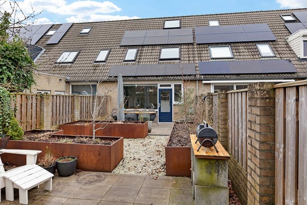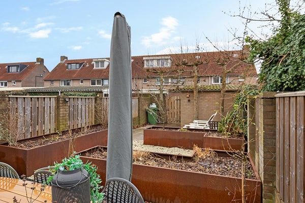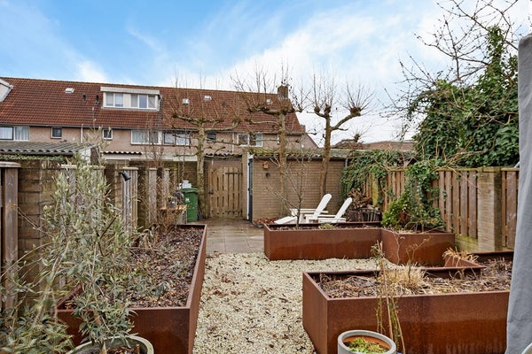 De achtertuin is gelegen op het zuiden, ideaal voor wie graag van de zon geniet. Er is voldoende ruimte voor meerdere zitplekken en de tuin is verzorgd en onderhoudsvriendelijk ingericht. Achterin staat een stenen berging, handig voor fietsen en extra opslag, en er is een achterom.