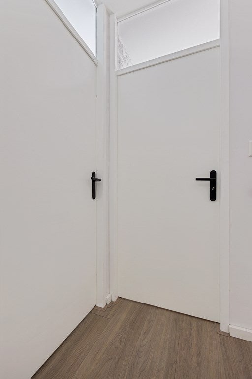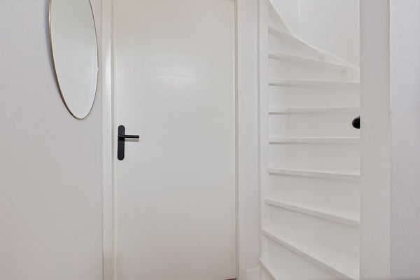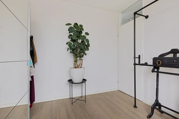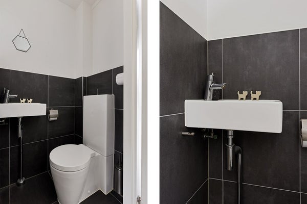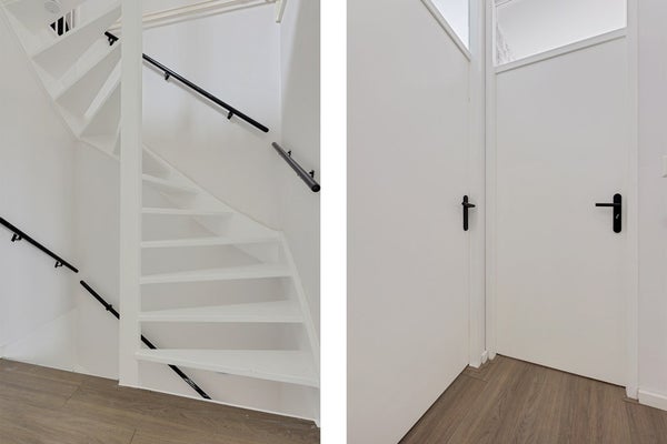 Via de voortuin bereikt u de voordeur. In de entree vindt u de meterkast, de toiletruimte met fonteintje en de trapopgang. Fijn detail: er is een trapkast aanwezig met veel opbergruimte. De wanden en plafonds zijn strak gestuct, wat meteen zorgt voor een verzorgde, moderne basis.