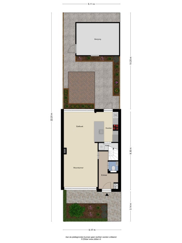 - Aanwezig (34 m², gelegen op het zuidoosten)