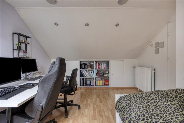 Ga je naar boven, dan vind je vier fijne slaapkamers verdeeld over twee verdiepingen. Rust en privacy zijn hier gegarandeerd. De kamers op de eerste verdieping zijn ruim en praktisch ingericht. Perfect voor een jong gezin of gewoon lekker voor jezelf, omdat je hier net zo gemakkelijk een thuiskantoor als een inloopkast kunt creëren. De ruime badkamer voelt als je eigen mini-spa: strakke tegels, een inloopdouche en een frisse uitstraling.