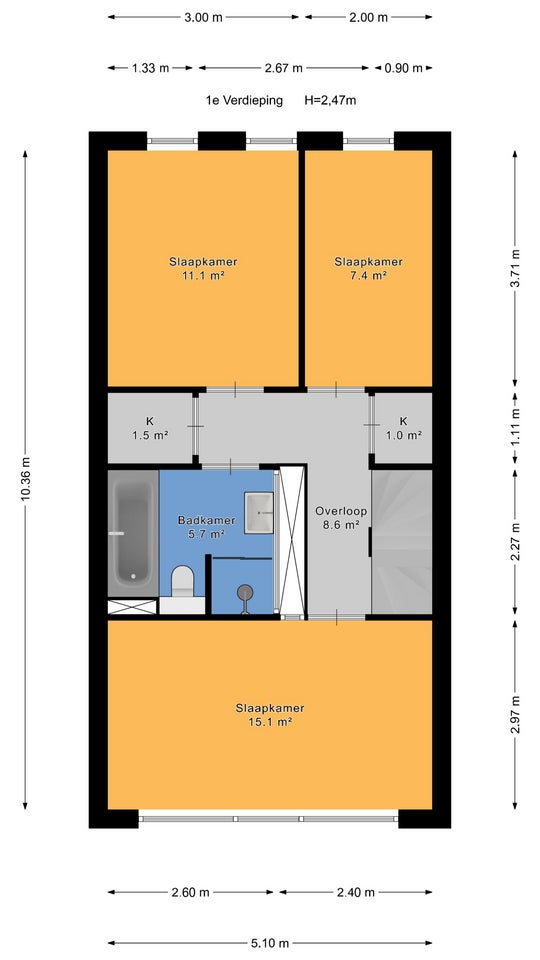 - De tussenwoning heeft een woonoppervlakte van 140 m² en beschikt over 5 kamers, waarvan 4 slaapkamers;