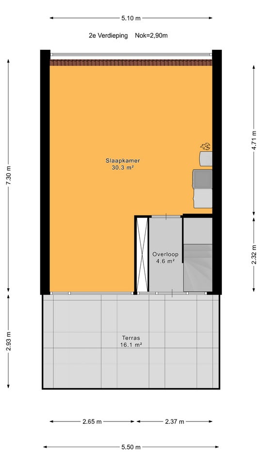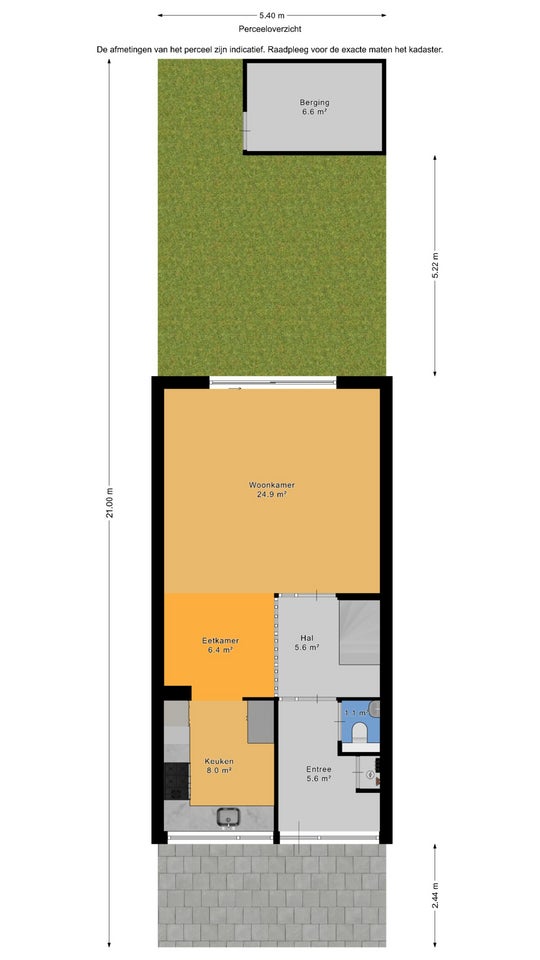 - Aanwezig (39 m², gelegen op het zuidwesten)