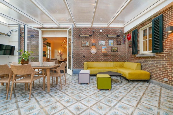 - De tussenwoning heeft een woonoppervlakte van 665 m² en beschikt over 12 kamers, waarvan 8 slaapkamers;