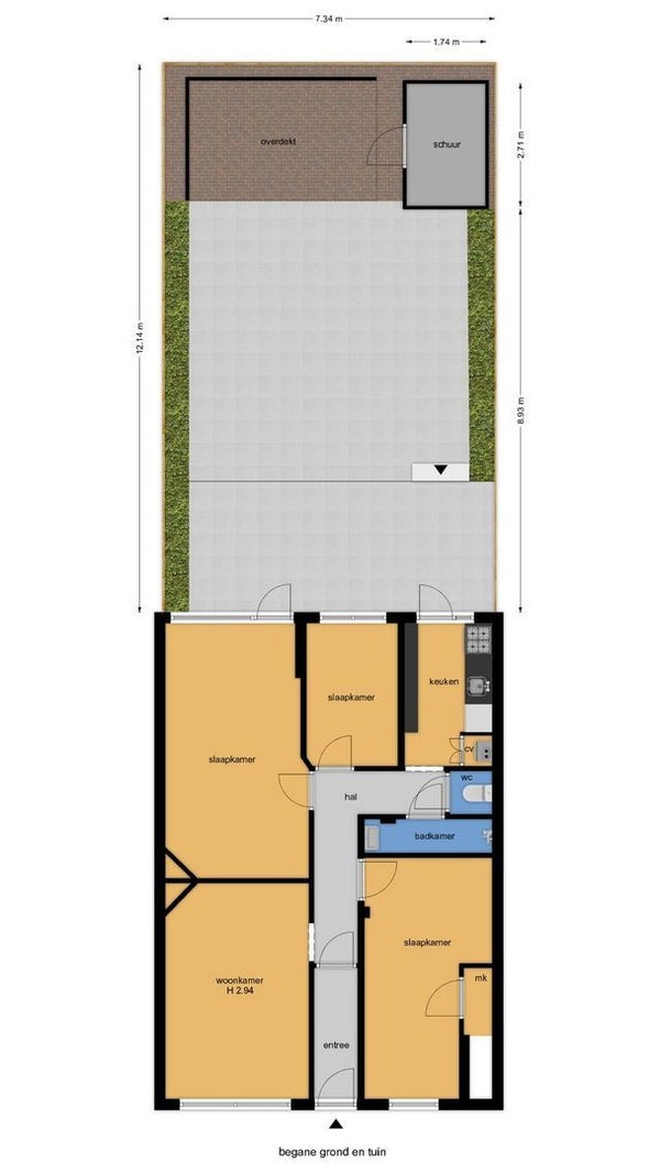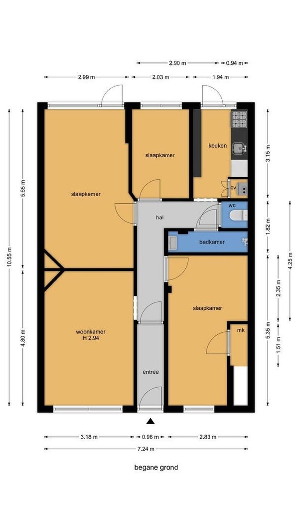 - De tussenwoning heeft een woonoppervlakte van 76 m² en beschikt over 4 kamers, waarvan 3 slaapkamers;