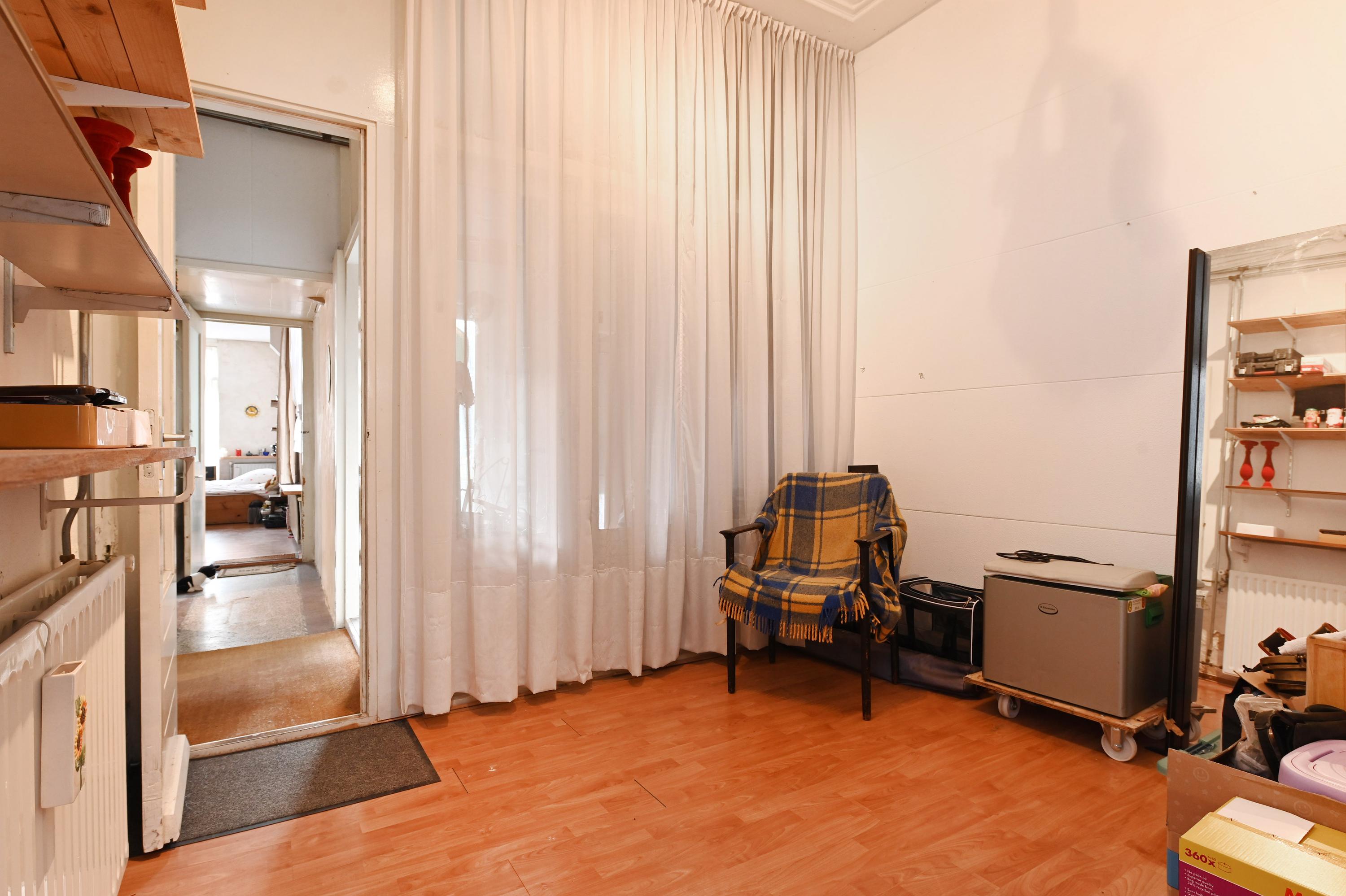 Dit ruime woon-/winkelpand aan de Weimarstraat 64a in Den Haag, gelegen in het gezellige Regentessekwartier, biedt 114 m² aan ruimte. Aan de voorzijde bevindt zich een afgesloten portiek dat leidt naar de woon-/winkelruimte met afmetingen van ca. 10,50 x 3,85 m en een achterliggende kamer van ca. 3,25 x 2,70 m. De woning beschikt over een hal met bergruimte, een toilet, een keuken met moderne voorzieningen, en een badkamer met ligbad en aparte douche. Er zijn twee slaapkamers, waarvan de grootste ca. 6,60 x 3,60 m meet en toegang biedt tot de L-vormige achtertuin op het zuidoosten van 53 m². Met alle benodigde faciliteiten dichtbij en een goede verbinding naar het centrum en het strand, is dit pand perfect gelegen.