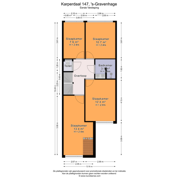 - De tussenwoning heeft een woonoppervlakte van 141 m² en beschikt over 6 kamers, waarvan 5 slaapkamers;