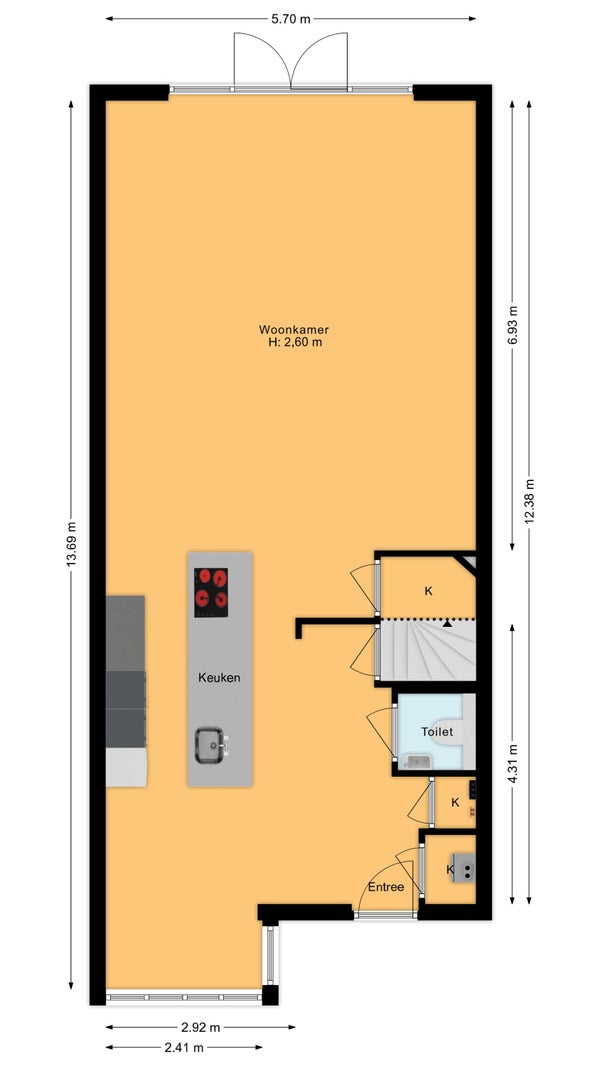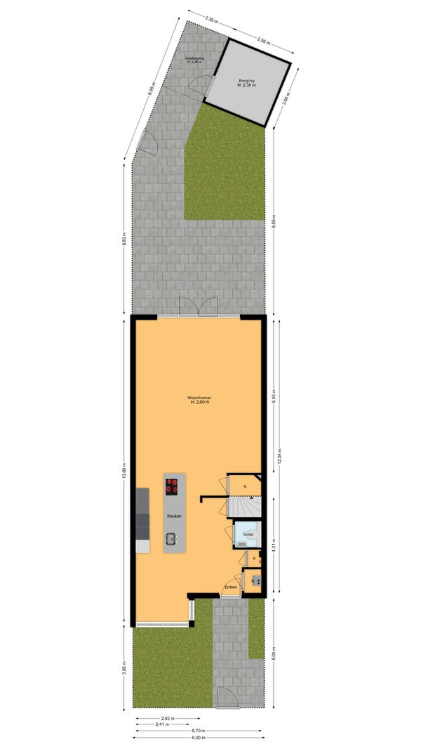 - Aanwezig (72 m², gelegen op het zuidwesten)