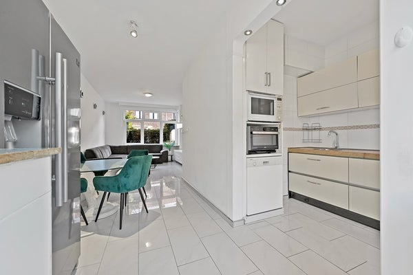 Een heerlijk ruim en goed onderhouden 5-kamer eengezinswoning van maar liefst 100m² met een voor- en achtertuin. Deze jaren '30 woning telt 4 slaapkamers, een doorgebroken woon/eetkamer met open keuken, een ruime kelder onder de gehele woonkamer met een betonnen vloer en verwarming, een zonnige achtertuin (zuidwesten) met berging, welke voorzien is van een 2e keuken. Daarnaast is de woning volledig voorzien van kunststof kozijnen met dubbel glas en een CV-installatie met een Vaillant VHR ketel (2015).