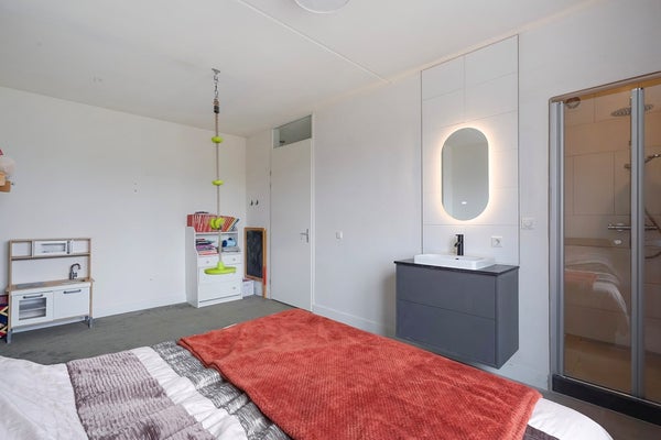 De woning beschikt over vier ruime slaapkamers, waardoor er volop flexibiliteit is voor een gezin, gasten of een comfortabele werkruimte aan huis. De moderne badkamer is stijlvol uitgevoerd en voorzien van een ligbad en separate douche. Daarnaast bevindt zich op de bovenste verdieping bij de slaapkamer een extra douche, wat zorgt voor extra comfort en privacy.