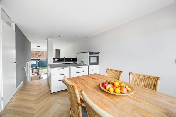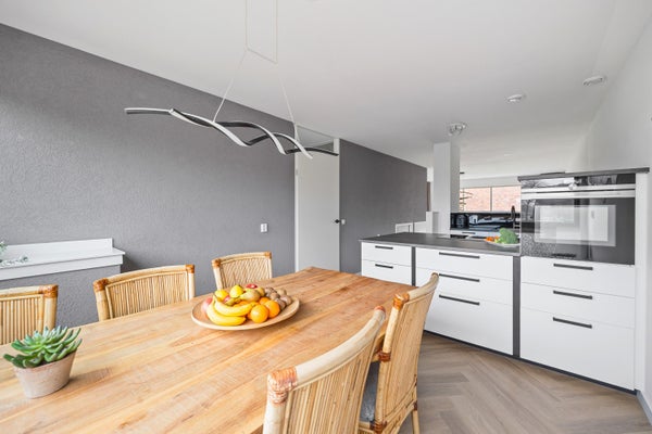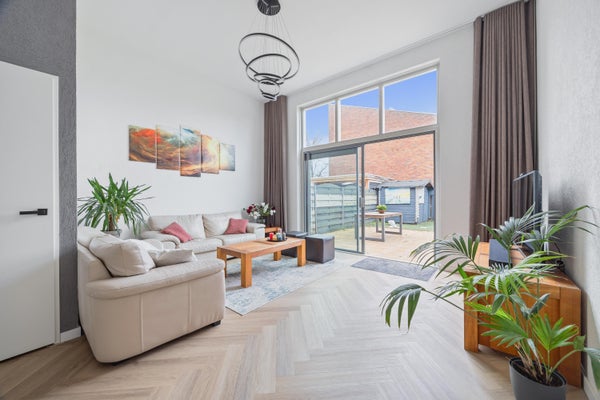 Deze verrassend ruime en modern afgewerkte split-level tussenwoning biedt een speelse indeling en veel licht. Met een woonoppervlakte van circa 174 m², energielabel A en een eigen oprit met inpandige garage is dit een ideaal gezinshuis. De woning heeft een stijlvolle visgraat PVC vloer met vloerverwarming en een vernieuwde keuken met A-merk inbouwapparatuur. De ruime living, met hoge plafonds, heeft een schuifpui naar de zonnige achtertuin.