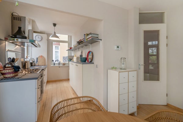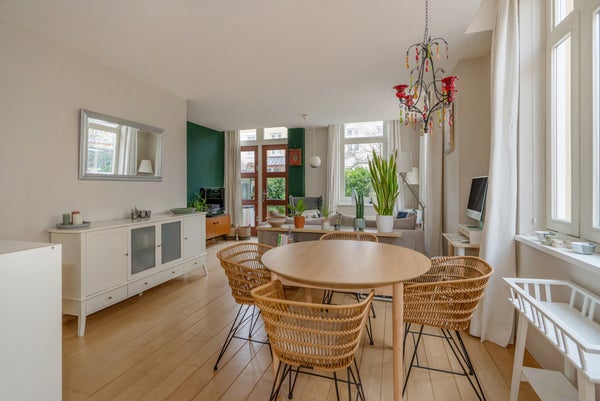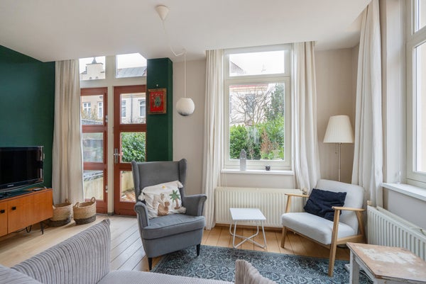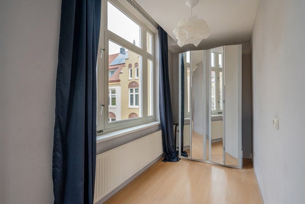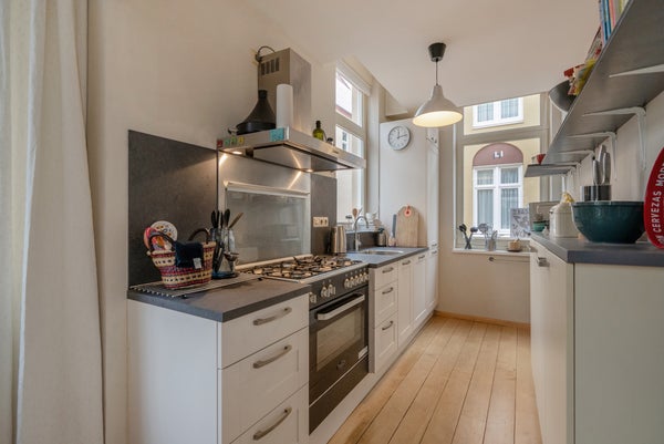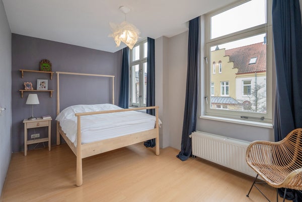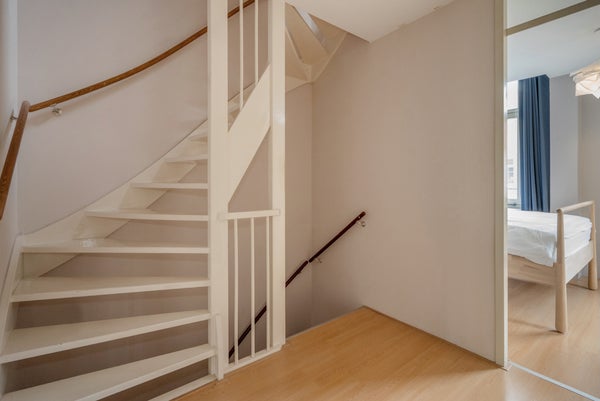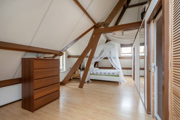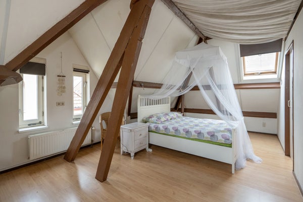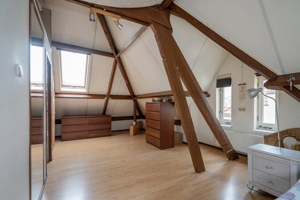 De ruime woon-/eetkamer profiteert van veel lichtinval door de hoekligging en leidt naar de halfopen keuken met diverse apparatuur. Op de eerste etage zijn er twee grote slaapkamers en een nette badkamer. De tweede etage biedt een grote zolderkamer die eenvoudig kan worden omgevormd. De woning heeft energielabel D, dubbele beglazing en een actieve VvE. Erfpacht is eeuwigdurend heruitgegeven met afgekochte canon.