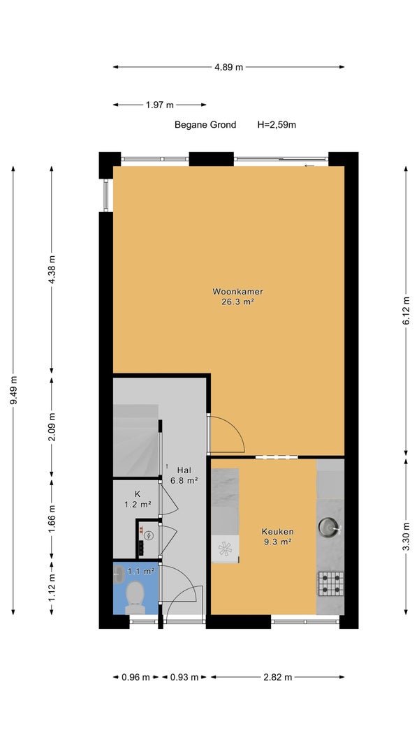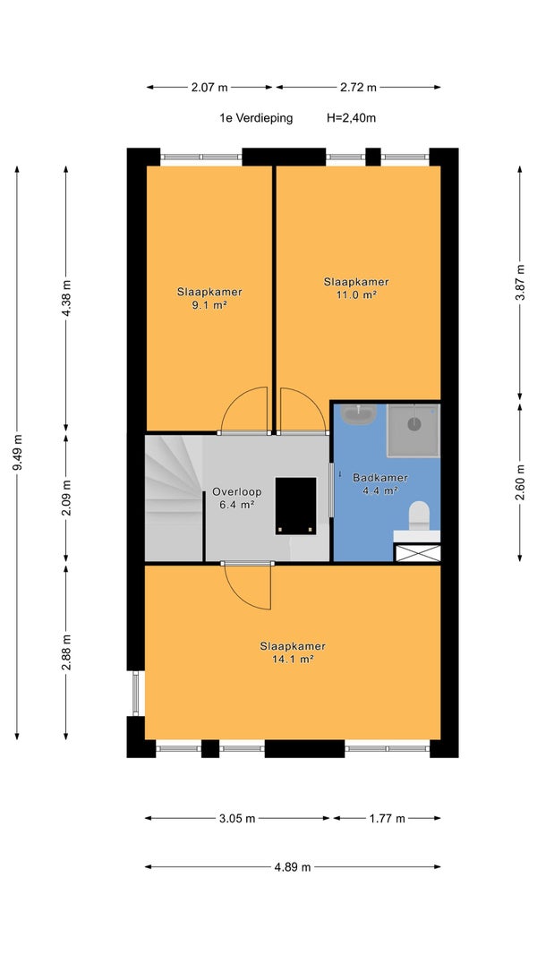 - De hoekwoning heeft een woonoppervlakte van 93 m² en beschikt over 5 kamers, waarvan 3 slaapkamers;