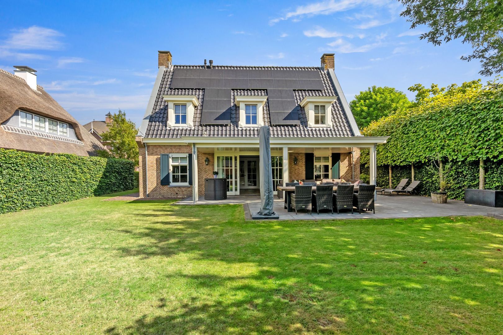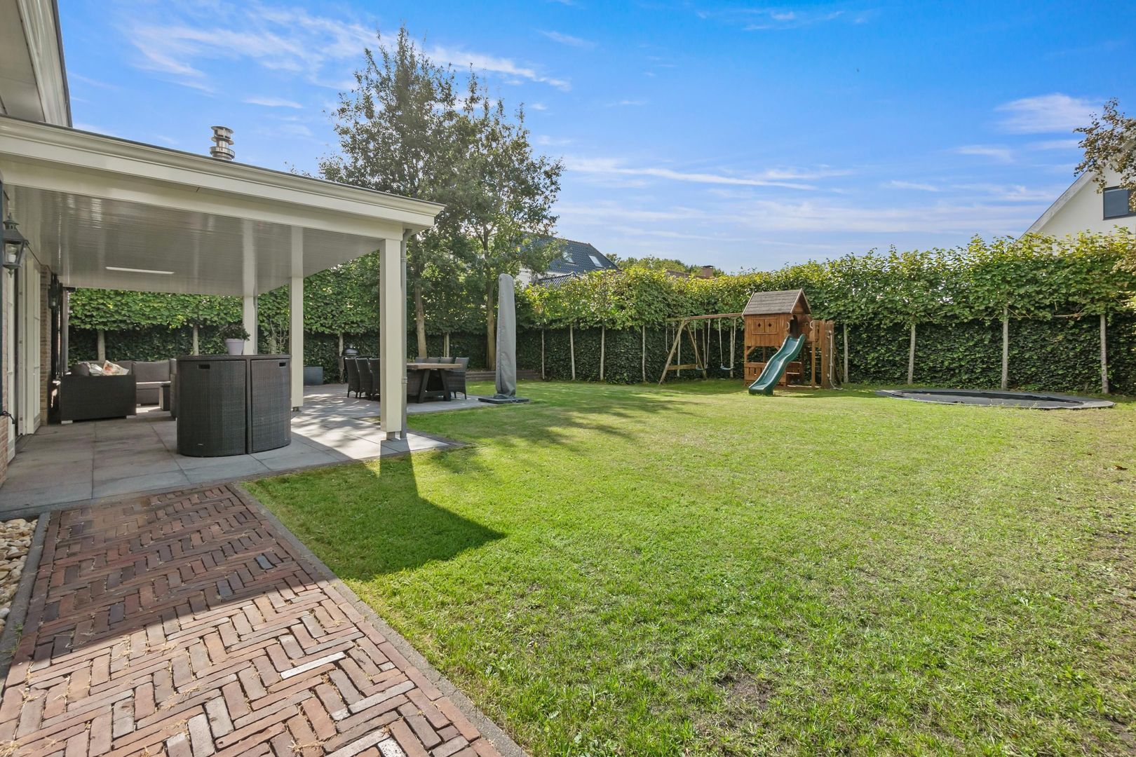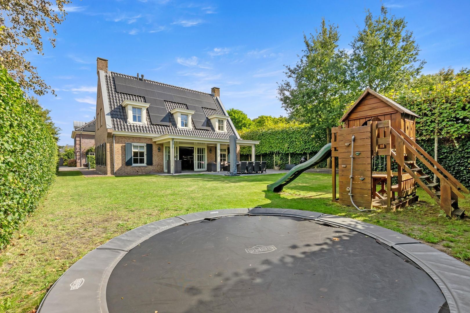 De woning aan het Jan van Polanenpad 5 in Vroondaal biedt een unieke kans om te genieten van luxe en privacy. Gebouwd in 2013, met een eigen oprit voor drie tot vier auto’s, verwelkomt de villa u met een statige entree en hoge plafonds. De royale woon- en eetkamer is vol licht en leidt naar de verzorgde tuin met overdekt terras, een perfecte plek om te ontspannen. De moderne woonkeuken is uitgerust met een Smeg gasfornuis en een ruime bijkeuken voor extra gemak. Op de eerste verdieping zijn er vier grote slaapkamers en een luxe badkamer. De tweede verdieping herbergt een vijfde slaapkamer en extra bergruimte. De tuin is onderhoudsvriendelijk met een ideale zonligging. Vroondaal biedt bovendien een natuurrijke omgeving met scholen, recreatie en gemakkelijke snelweggemak.