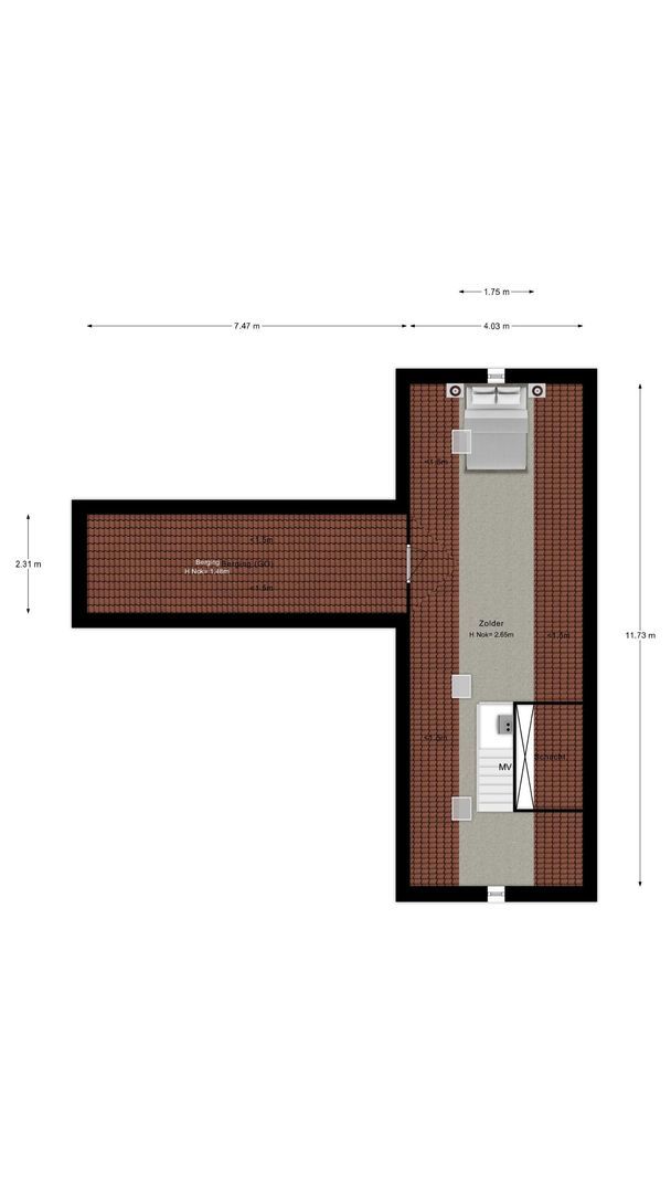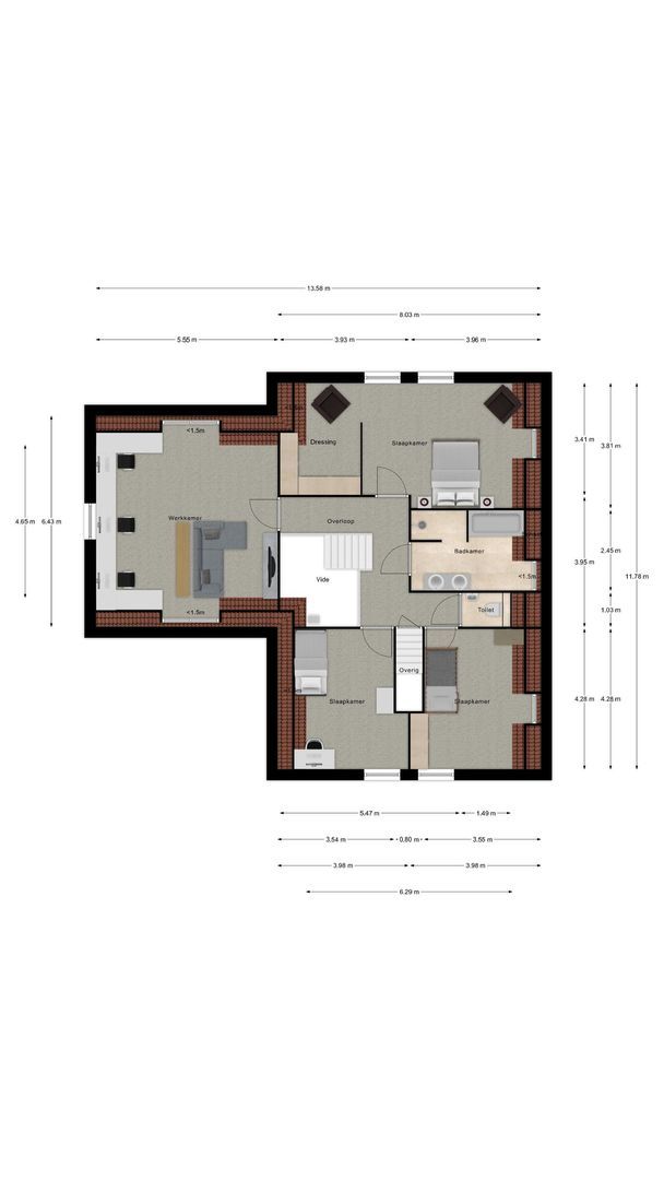 - De tussenwoning heeft een woonoppervlakte van 261 m² en beschikt over 7 kamers, waarvan 5 slaapkamers;