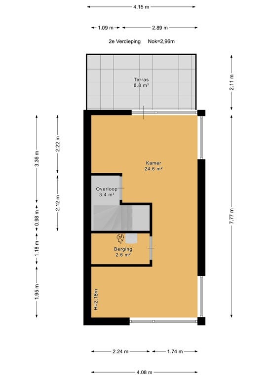 • De tussenwoning heeft een woonoppervlakte van 192 m² en beschikt over 4 kamers, waarvan 3 slaapkamers;
