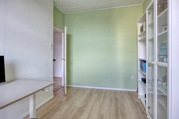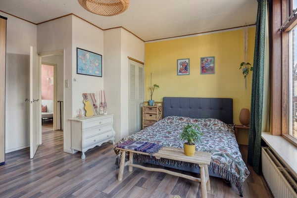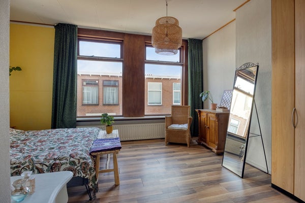 Via the stairs, you reach the first floor with no fewer than three spacious bedrooms. All bedrooms have beautiful high ceilings and large windows that make them wonderfully bright. The rooms offer plenty of possibilities: master bedroom, children's rooms, a home office, or a walk-in closet—you can arrange it however you like. The large bedroom at the front has a convenient built-in closet that provides extra storage space.