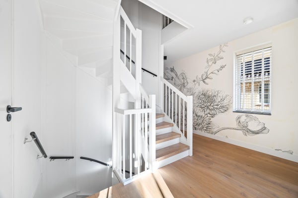 In de stijlvolle villawijk Groenhaaghe ligt deze prachtige twee-onder-een-kapwoning direct aan het water. De groene, kindvriendelijke wijk (bouwjaar 2018) kenmerkt zich door statige lanen, royale woningen en een rustige, hoogwaardige uitstraling. De architectuur in kenmerkende Dudokstijl ademt de sfeer van de jaren ’20 en ’30, uitgevoerd met het comfort, de isolatie en duurzaamheid van nu.