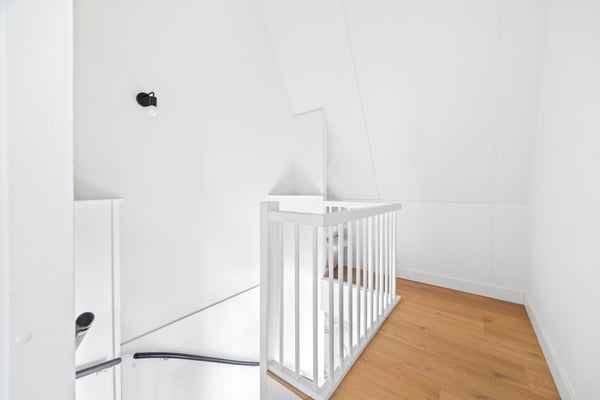 Via de trap met ingebouwde verlichting bereikt u de eerste verdieping, waar zich drie ruime slaapkamers, de badkamer en een separaat tweede toilet bevinden.