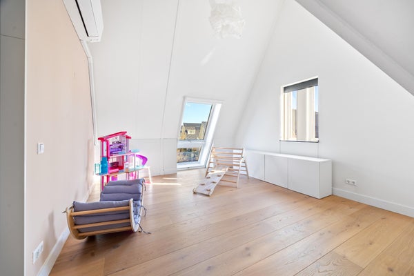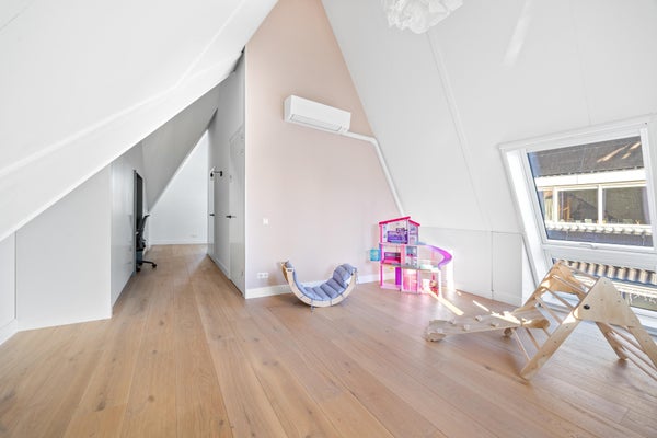 De tweede verdieping is ronduit indrukwekkend dankzij de samengestelde kapconstructie en een nokhoogte van maar liefst 4,79 meter. Hier is eenvoudig een vijfde slaapkamer te realiseren, terwijl het ruimtelijke karakter behouden blijft. Zowel aan de voor- als achterzijde kan een volwaardige kamer worden gecreëerd.