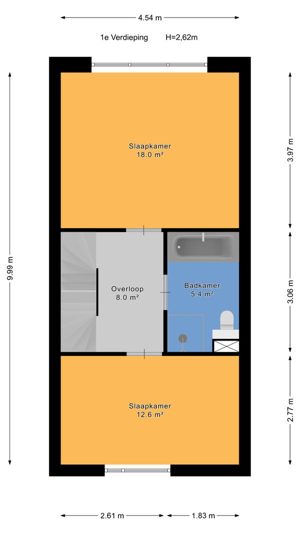 - De tussenwoning heeft een woonoppervlakte van 123 m² en beschikt over 5 kamers, waarvan 4 slaapkamers;