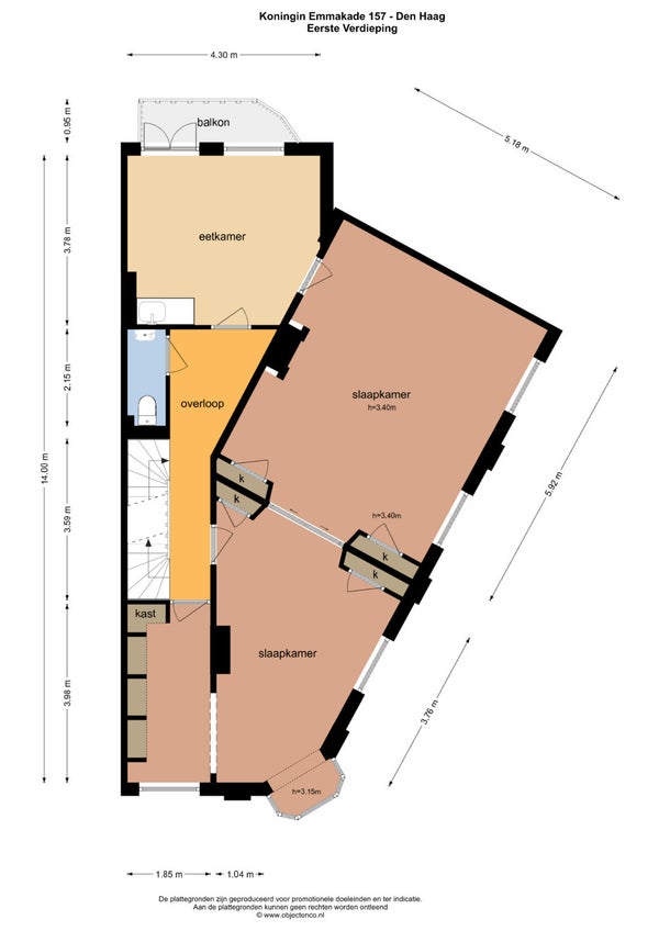 - De hoekwoning heeft een woonoppervlakte van 333 m² en beschikt over 10 kamers, waarvan 8 slaapkamers;