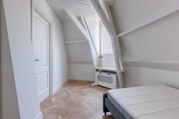 Twee ruime slaapkamers, een derde kamer geschikt als slaap- of studeerkamer en een luxe badkamer met ligbad, dubbele wastafel, dubbele inloopdouche en een Frans balkon.