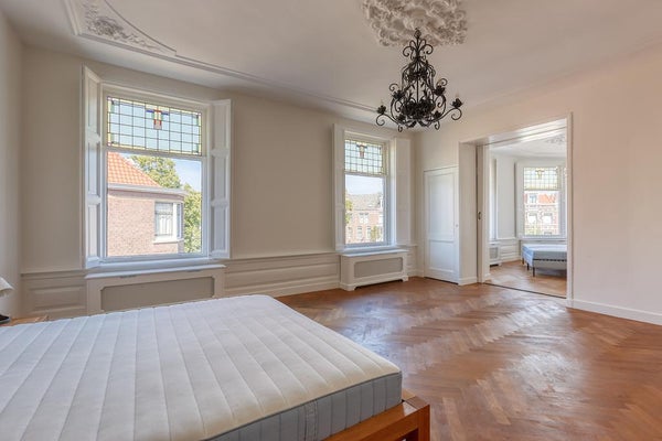 In een karakteristieke straat staat deze bijzonder royale en goed onderhouden hoekwoning uit 1893 met een woonoppervlak van 332,80 m² (NEN2580). De woning beschikt over maar liefst 8 slaapkamers, 2 luxe badkamers met marmeren vloeren, 4 aparte toiletten, een stadse tuin, een Frans balkon en een beschut dakterras met Japans zitbad.