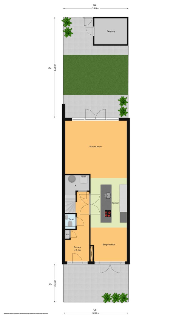 - Aanwezig (50 m², gelegen op het noordoosten)