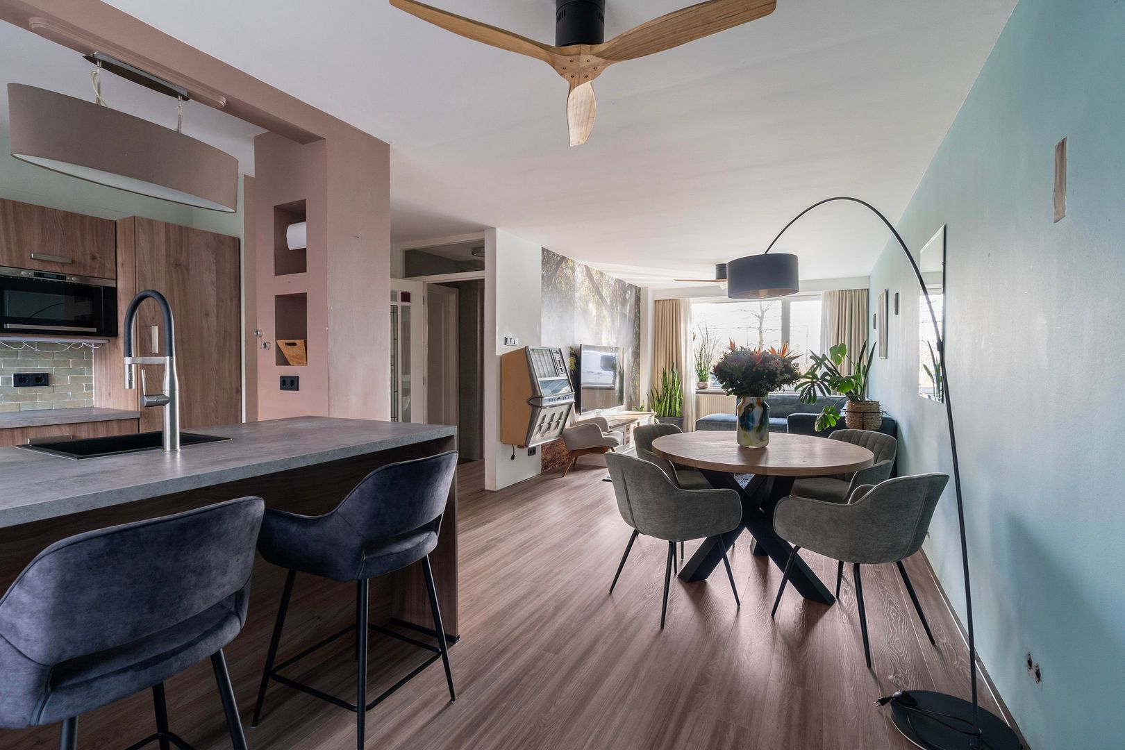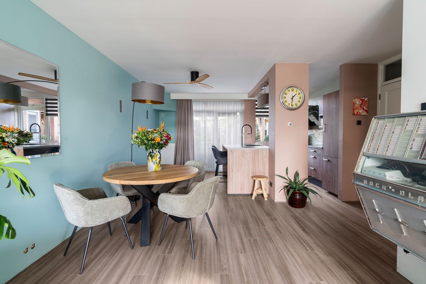 De indeling omvat een gang, een doorgebroken woon/eetkamer, een keuken met spoeleiland en schuifpui naar de 10 meter diepe achtertuin. Er zijn 3 slaapkamers, een inloopdouche in de badkamer, en een aparte wasruimte via de tuin. Verwarming gaat via een Intergas cv-ketel uit 2015 en de woning heeft dubbel glas.