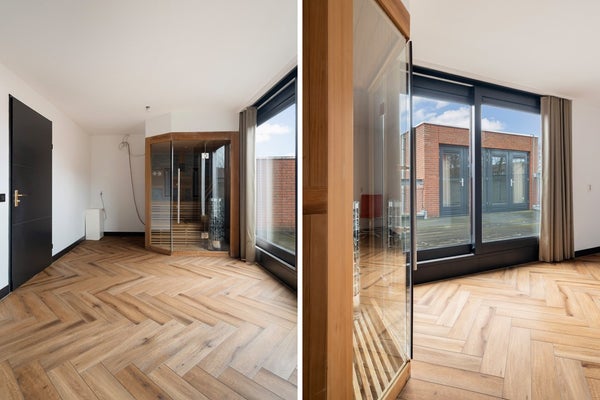 - De woning beschikt onder andere over de volgende voorzieningen: Airconditioning, Bad, Mechanische ventilatie, Dakterras, Sauna, Douche, Schuifdeuren, Toilet.