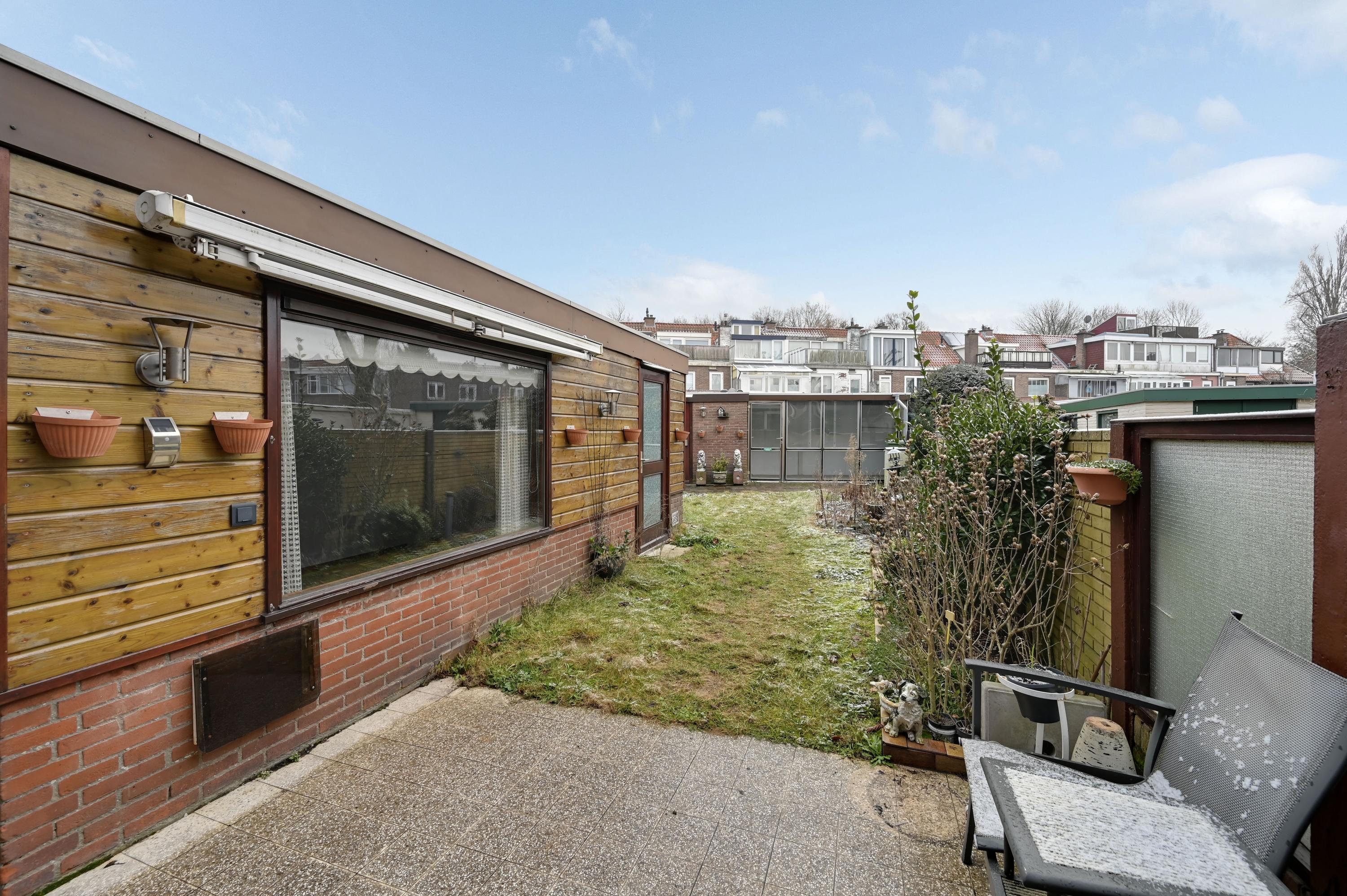 De benedenwoning aan de Busken Huëtstraat 14 in Den Haag biedt een rustige leefomgeving met een zonnige achtertuin op het zuiden. Met een gebruiksoppervlak van 60 m² beschikt de woning over een royale woon-eetkamer van 30 m², een aangebouwde slaapkamer van 10 m² en praktische ruimtes zoals een afgesloten keuken en een vaste kast met wasmachineaansluiting. De achtertuin van 80 m², met een diepte van 14 meter, nodigt uit tot buiten genieten. Gelegen in een stedelijke omgeving met winkels en openbaar vervoer nabij, vormt deze woning een interessante kans voor kopers die willen moderniseren en hun eigen stijl willen aanbrengen. Verwarming gaat via gaskachels en er is dubbele beglazing aanwezig.