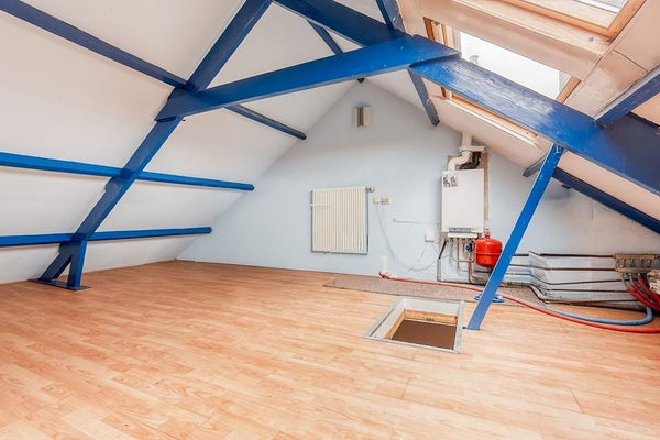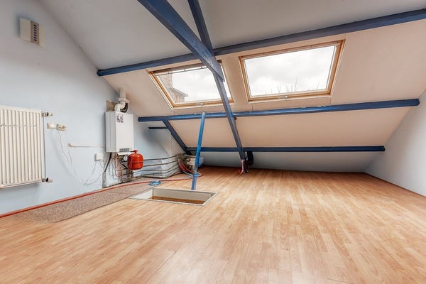 De tweede verdieping verrast met een ruime zolderkamer voorzien van dakramen en veel bergruimte onder het schuine dak. Deze multifunctionele ruimte kan dienen als vierde slaapkamer, speelkamer of thuiskantoor. Hier bevindt zich tevens de standplaats van de cv-combiketel en mogelijkheid voor de aansluiting van de wasmachine.