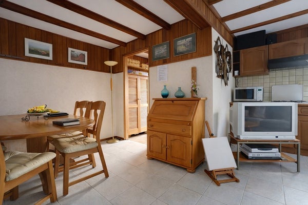 Upon entering, you arrive in the hallway, which provides access to the spacious toilet with washbasin (with the possibility to convert this into a bathroom) and the bright living area with open kitchen. The kitchen is equipped with a four-burner gas hob with extractor hood, refrigerator and microwave.