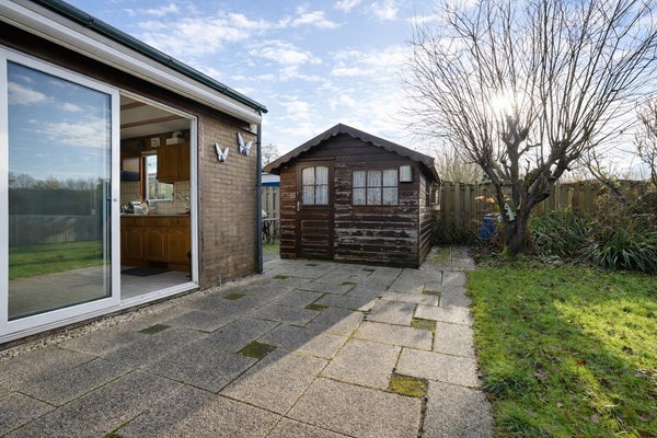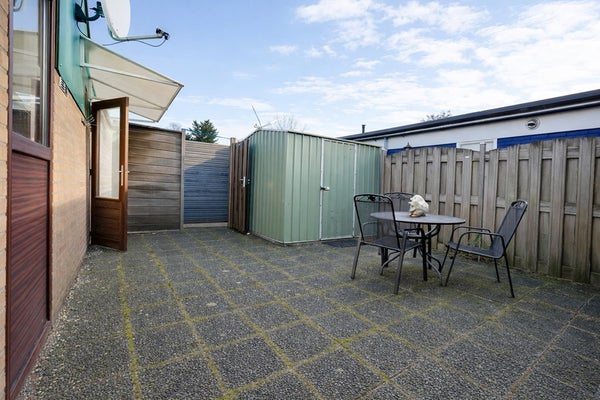 De woonruimte staat via een schuifpui in directe verbinding met de zonnige, groene tuin. In de tuin bevinden zich twee ruime schuren, wat zorgt voor voldoende opbergruimte.