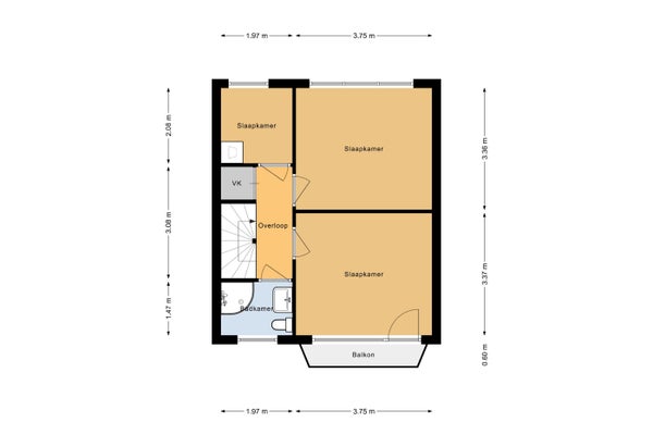 - Aanwezig (75 m², gelegen op het zuidwesten)