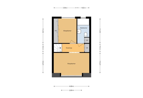 - De tussenwoning heeft een woonoppervlakte van 82 m² en beschikt over 3 kamers, waarvan 2 slaapkamers;