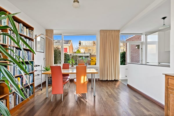 • Fijne doorzonwoonkamer van ca. 28 m² met extra licht via het zijraam.